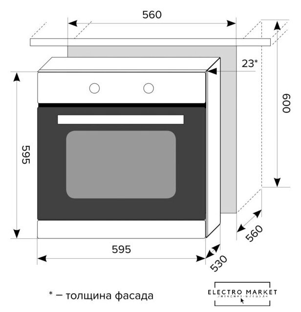 электрический статический, объем 56 л, 3 режима, очистка ручная, 3 стекла в дверце, направляющие рельефные
