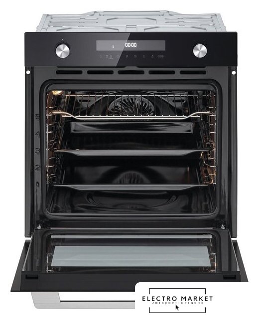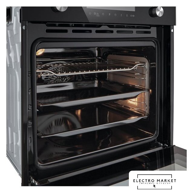 электрический с конвекцией, объем 76 л, 13 режимов, очистка паровая, 3 стекла в дверце, направляющие проволочные + телескопические (1 уровень)