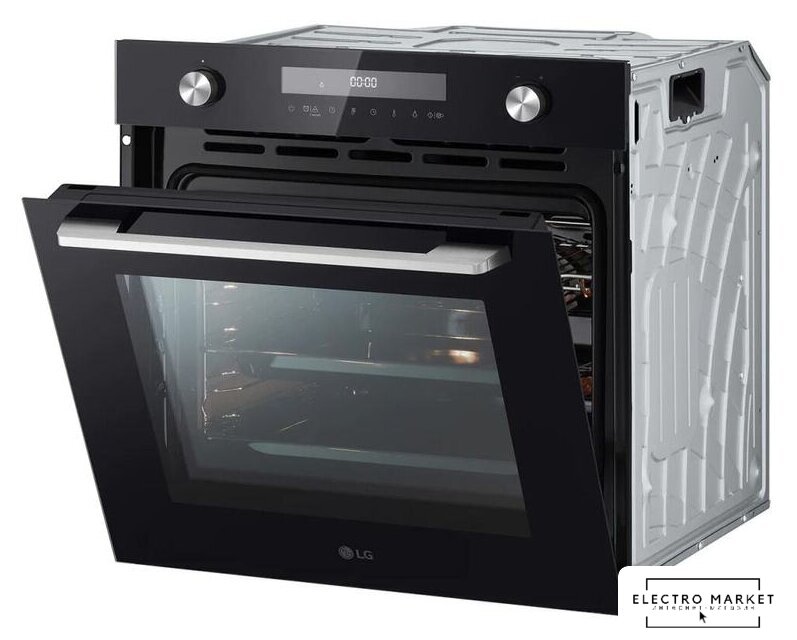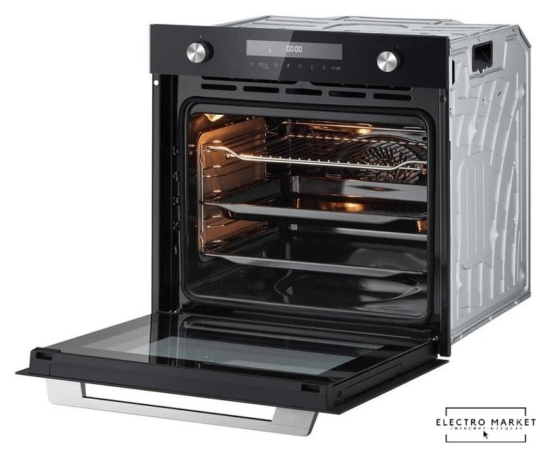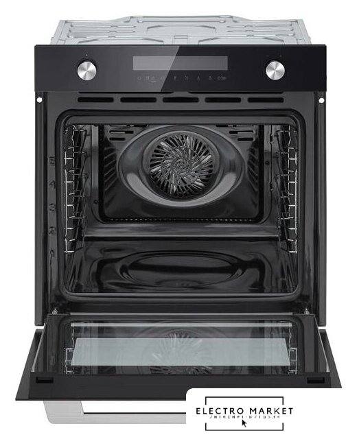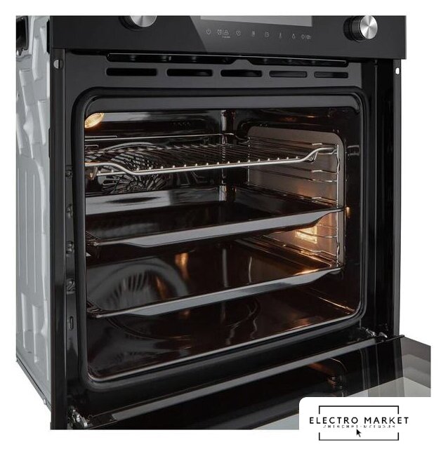 электрический с конвекцией, приготовление на пару, объем 77 л, утапливаемые переключатели, 11 режимов, очистка ручная, 2 стекла в дверце, направляющие проволочные + телескопические (1 уровень)