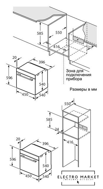 | Режимы работы | нижний нагрев, верхний нагрев, двухсторонний нагрев, двухсторонний нагрев + конвекция, размораживание |