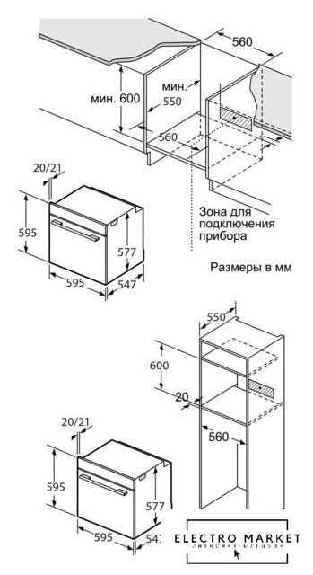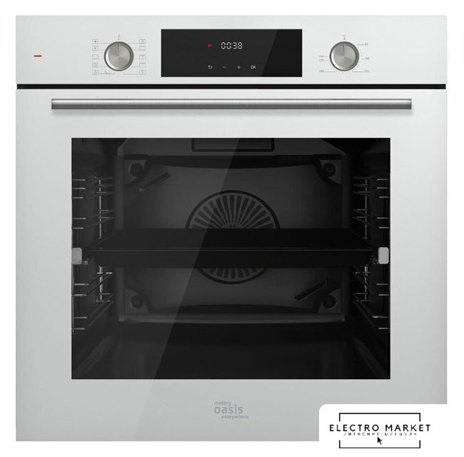 электрический с конвекцией, объем 66 л, 9 режимов, очистка паровая, 2 стекла в дверце, направляющие проволочные