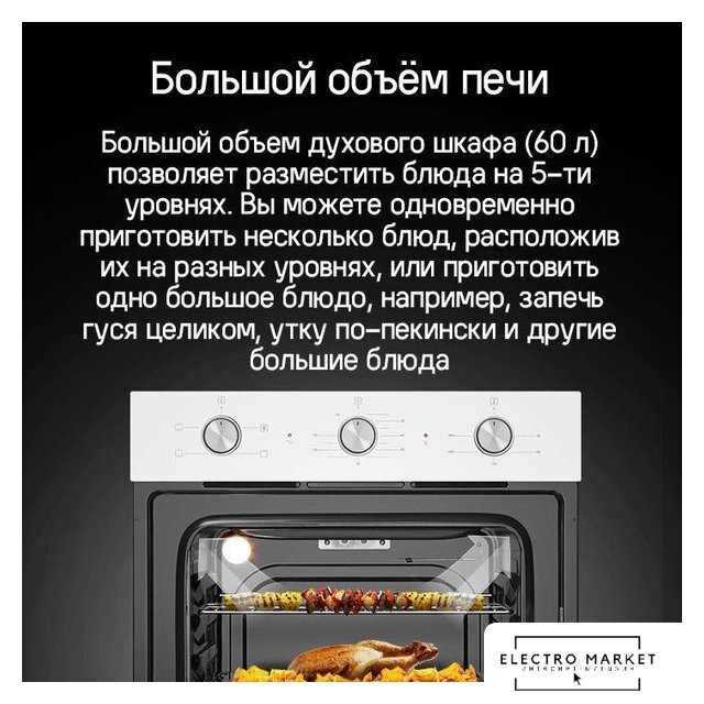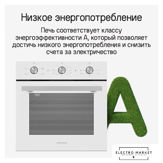 электрический с конвекцией, объем 65 л, 8 режимов, очистка ручная, проволочные направляющие, телескопические направляющие, энергопотребление A