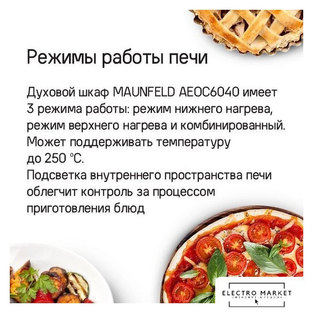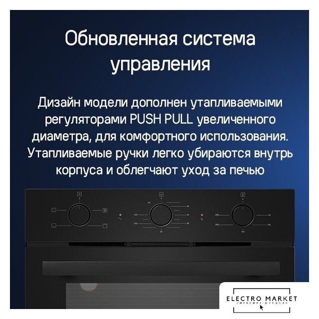 электрический с конвекцией, объем 65 л, 8 режимов, очистка ручная, проволочные направляющие, телескопические направляющие, энергопотребление A