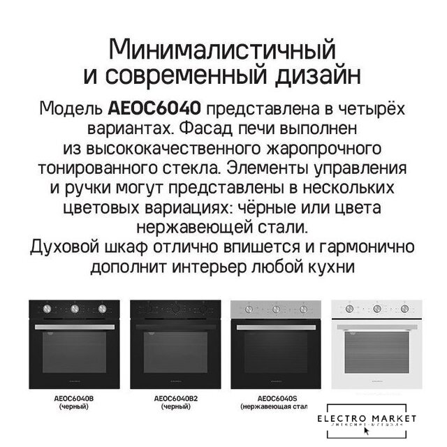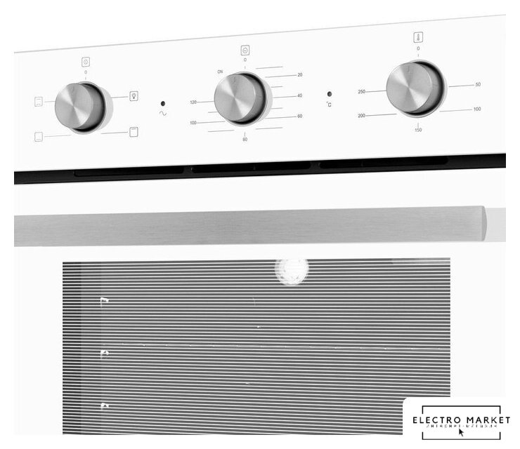 электрический статический, объем 60 л, утапливаемые переключатели, 6 режимов, очистка ручная, 3 стекла в дверце, направляющие рельефные