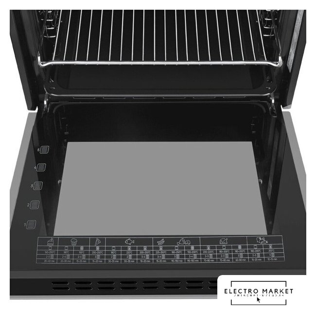 электрический с конвекцией, объем 66 л, 10 режимов, очистка ручная, проволочные направляющие, телескопические направляющие, энергопотребление A