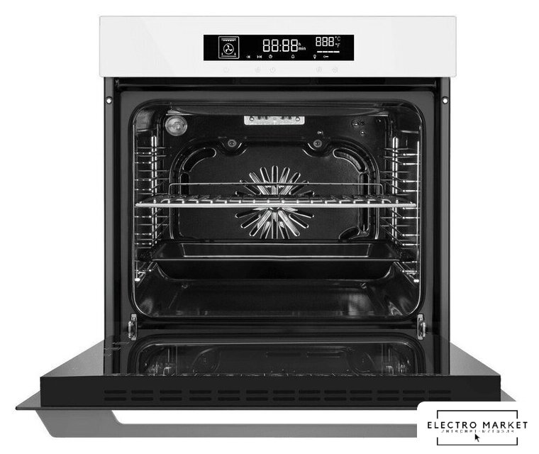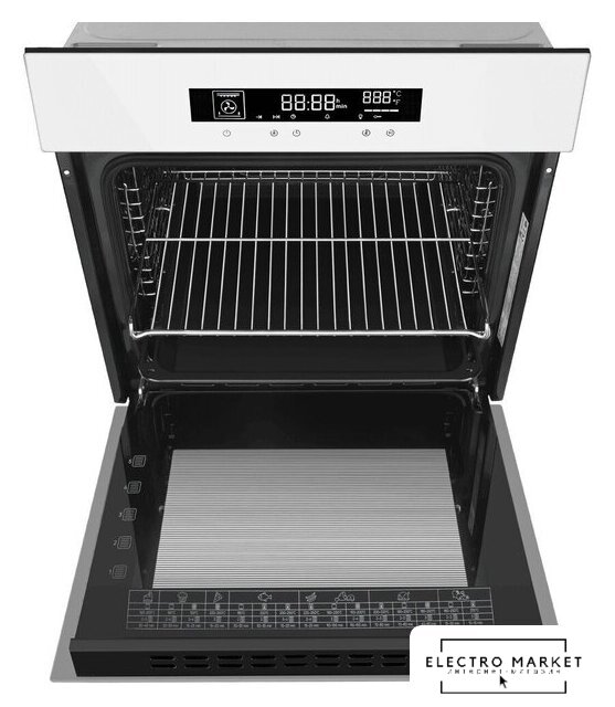 электрический с конвекцией, объем 66 л, 9 режимов, очистка паровая, 2 стекла в дверце, направляющие проволочные