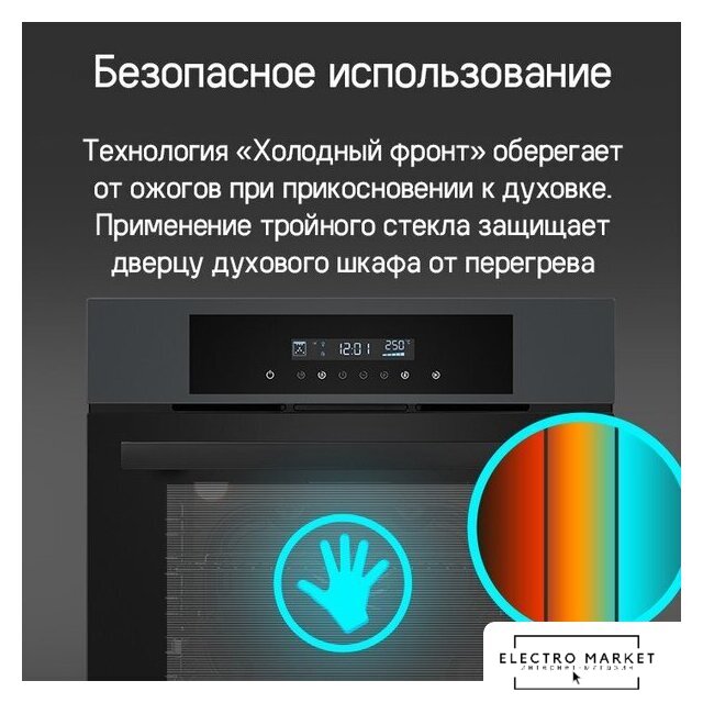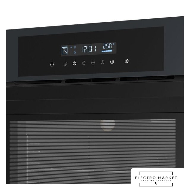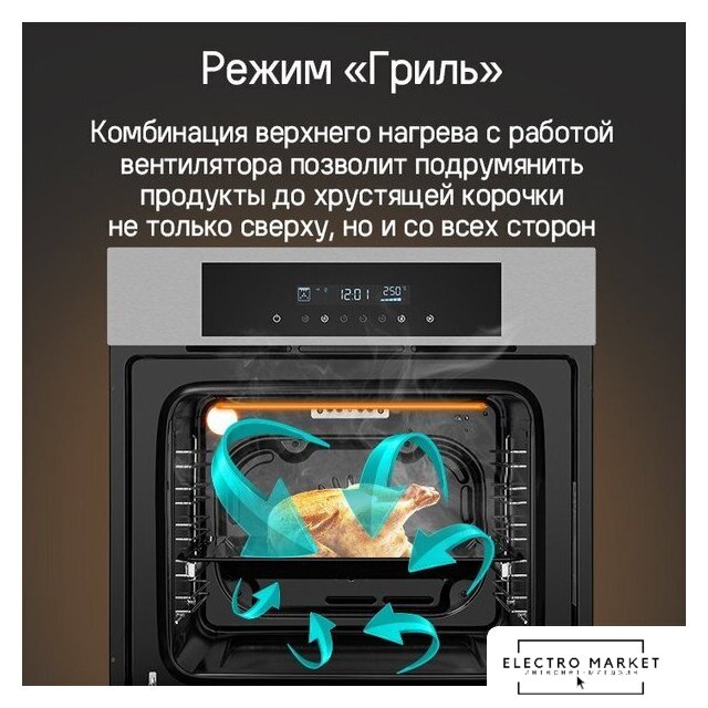 электрический с конвекцией, объем 80 л, утапливаемые переключатели, 5 режимов, очистка паровая, 2 стекла в дверце, направляющие проволочные