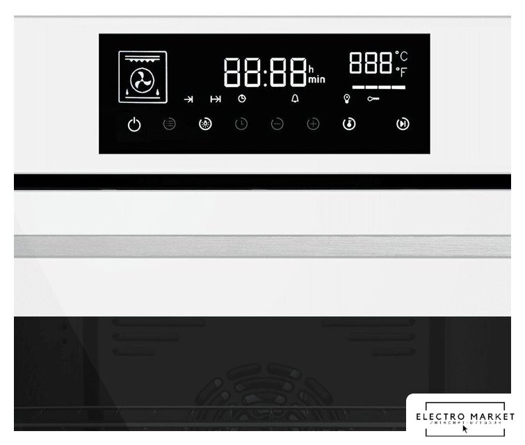 электрический с конвекцией, объем 70 л, 9 режимов, очистка ручная, проволочные направляющие, телескопические направляющие, энергопотребление A