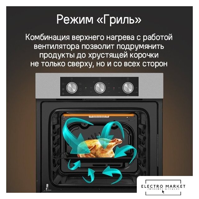 электрический статический, объем 64 л, утапливаемые переключатели, 5 режимов, очистка ручная, 3 стекла в дверце, направляющие проволочные
