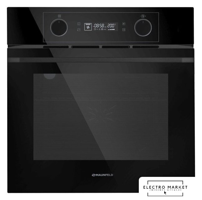 электрический с конвекцией, объем 60 л, утапливаемые переключатели, 10 режимов, очистка паровая, 3 стекла в дверце, направляющие проволочные