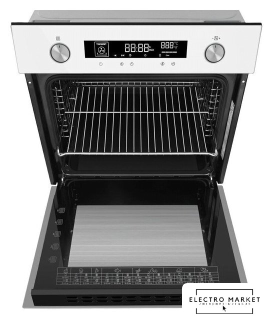 электрический с конвекцией, объем 60 л, 10 режимов, очистка ручная, 3 стекла в дверце, направляющие проволочные