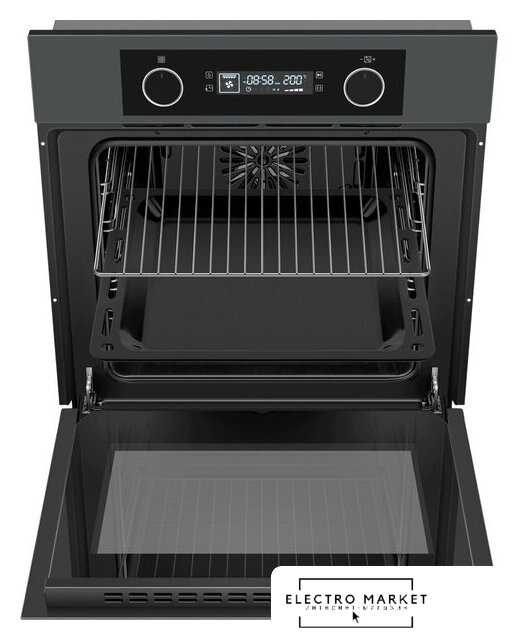электрический с конвекцией, объем 58 л, 6 режимов, очистка ручная, 2 стекла в дверце, направляющие проволочные