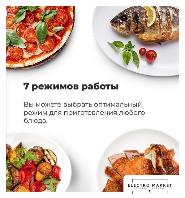 Режимы работы | нижний нагрев, двухсторонний нагрев, большой гриль, нижний нагрев + конвекция, двухсторонний нагрев + конвекция |