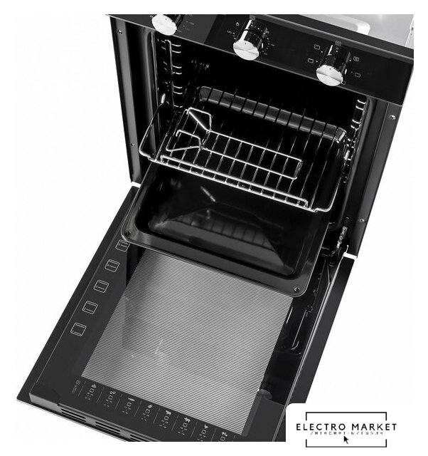 электрический с конвекцией, объем 51 л, 6 режимов, очистка ручная, 2 стекла в дверце, направляющие проволочные