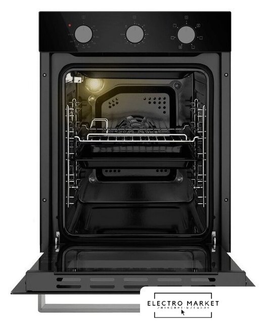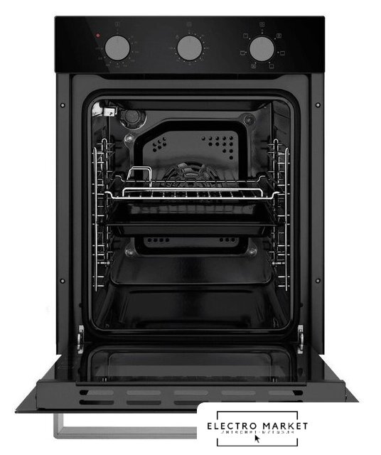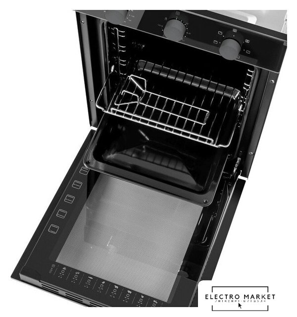 электрический с конвекцией, объем 51 л, 6 режимов, очистка ручная, 2 стекла в дверце, направляющие проволочные