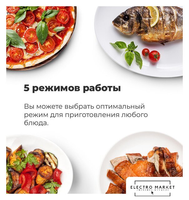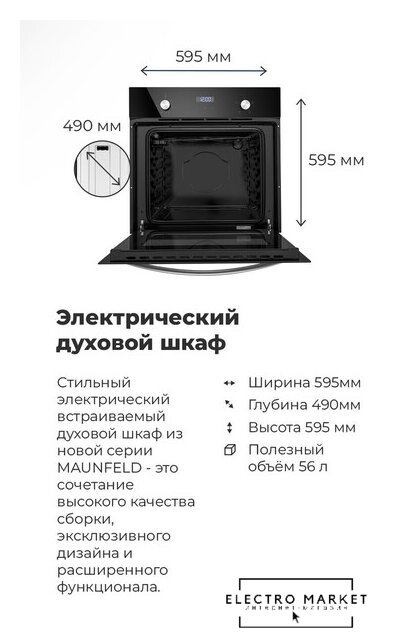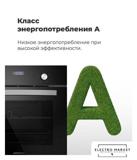 электрический с конвекцией, объем 60 л, 8 режимов, очистка ручная, проволочные направляющие, телескопические направляющие, энергопотребление A