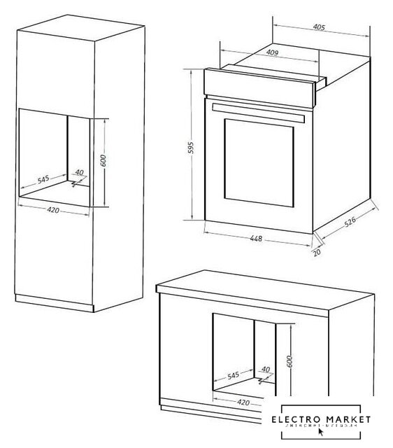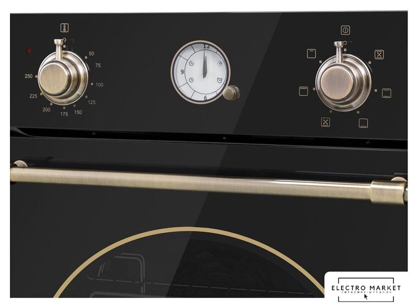 электрический с конвекцией, объем 60 л, утапливаемые переключатели, 6 режимов, очистка паровая, направляющие проволочные
