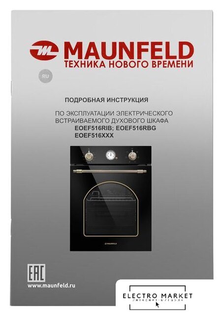 электрический с конвекцией, объем 58 л, 6 режимов, очистка ручная, энергопотребление A