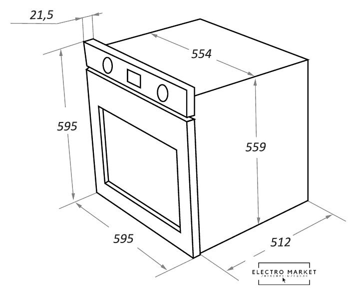 электрический с конвекцией, объем 67 л, утапливаемые переключатели, 6 режимов, очистка ручная, 3 стекла в дверце, направляющие проволочные