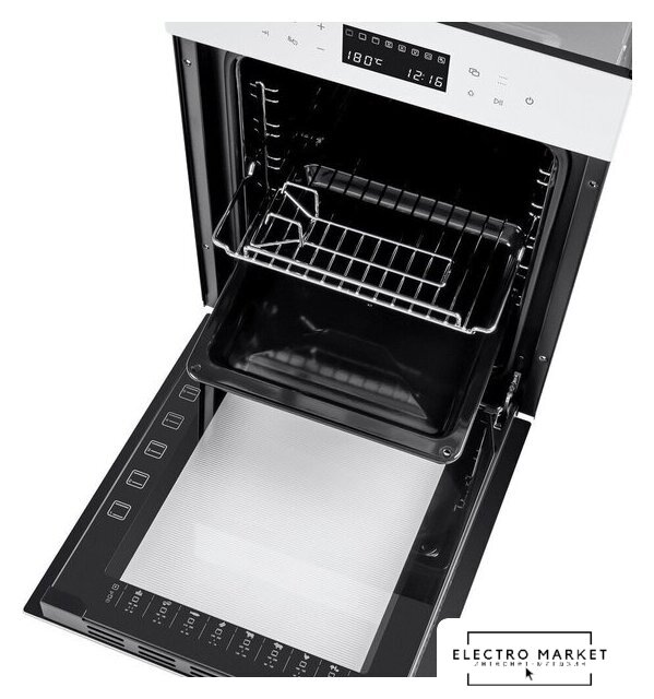 электрический с конвекцией, объем 55 л, 3 стекла в дверце, направляющие проволочные + телескопические