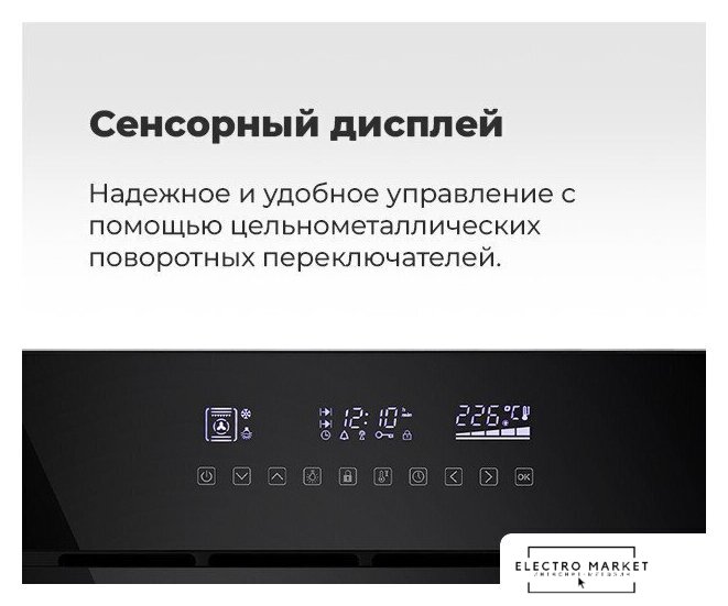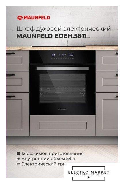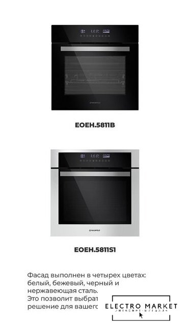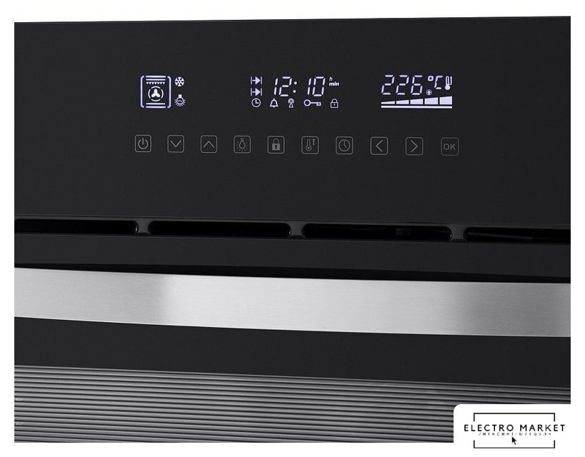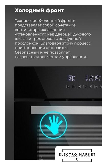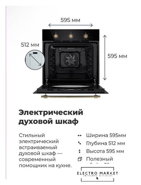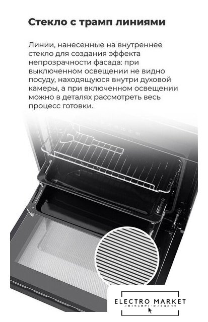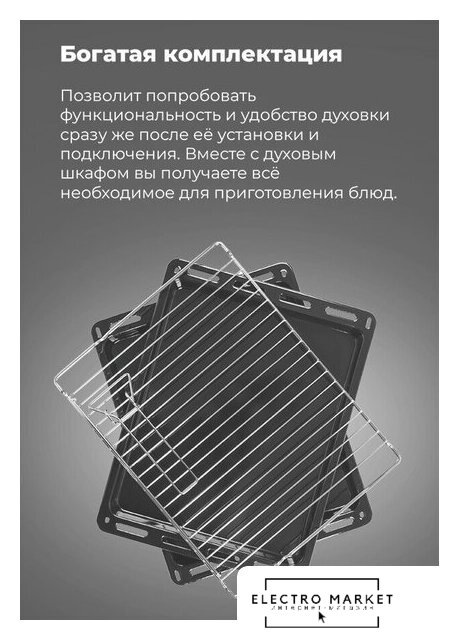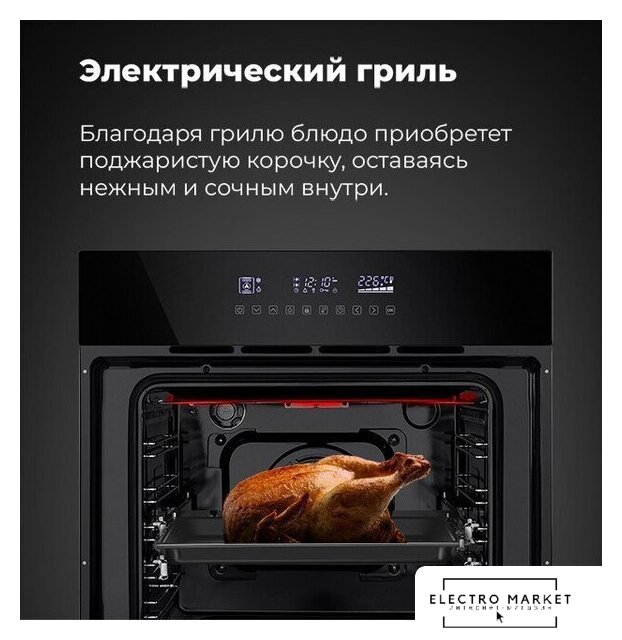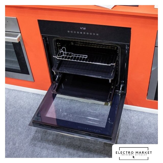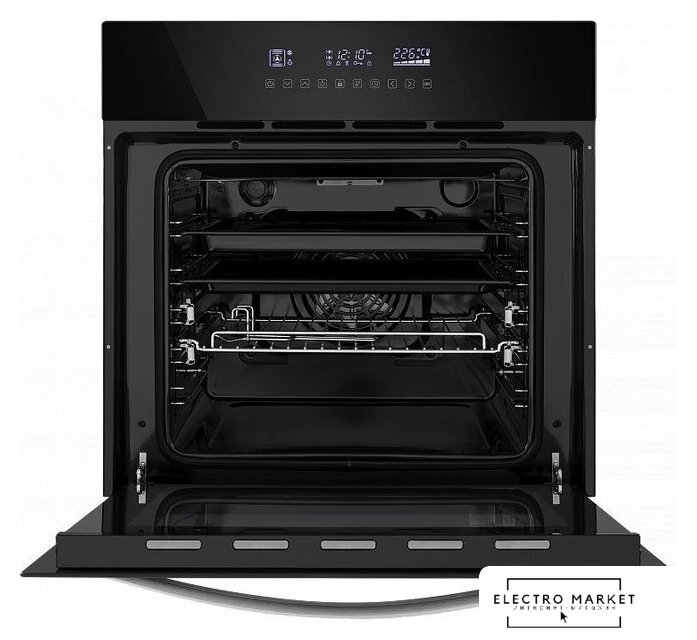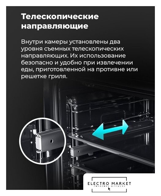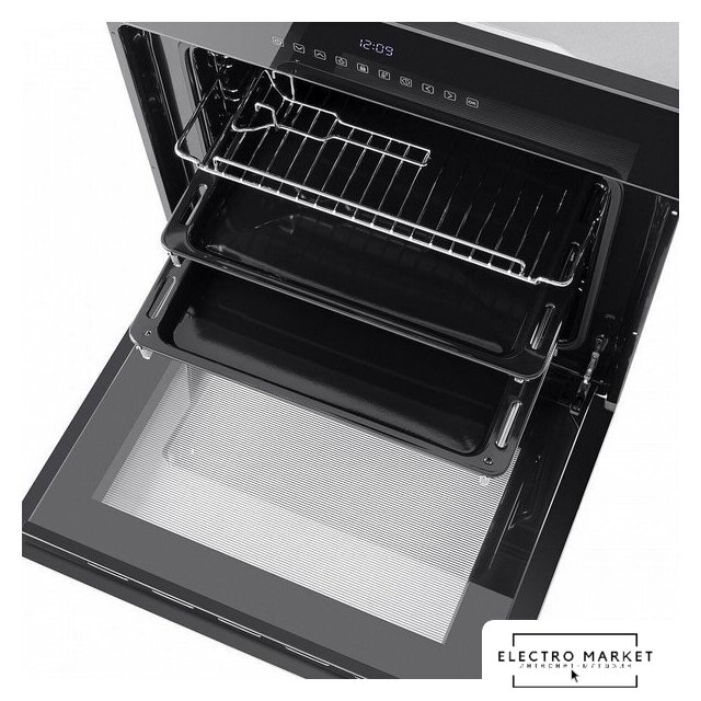 электрический с конвекцией, объем 72 л, 10 режимов, очистка ручная, 3 стекла в дверце, направляющие проволочные + телескопические