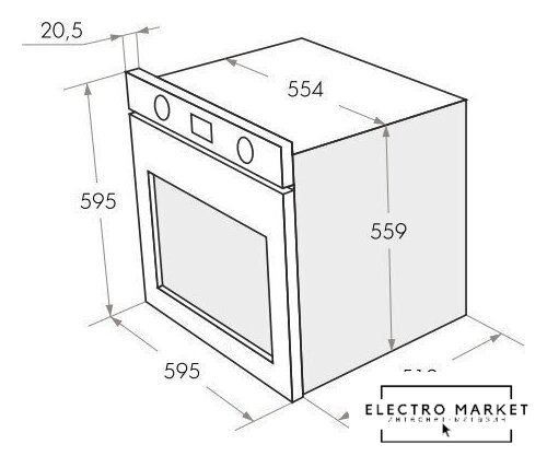 электрический с конвекцией, объем 65 л, утапливаемые переключатели, 8 режимов, очистка каталитическая, 2 стекла в дверце, направляющие проволочные + телескопические (1 уровень)