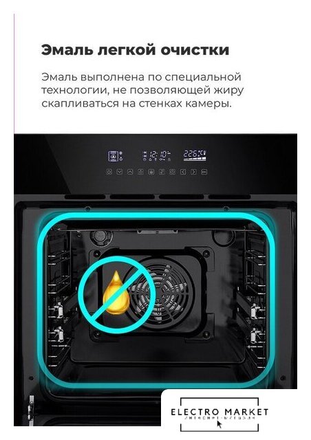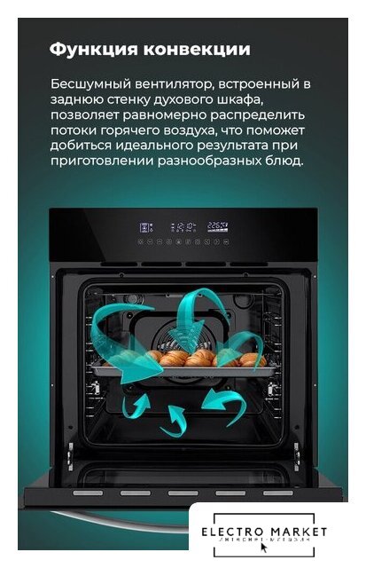 электрический с конвекцией, объем 76 л, 8 режимов, автопрограммы, очистка паровая, направляющие проволочные