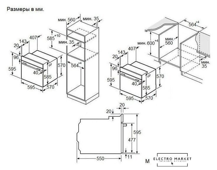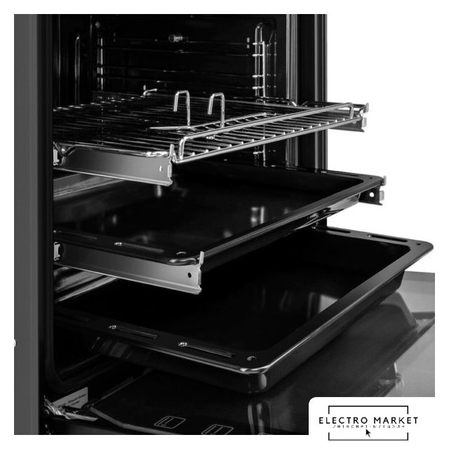 электрический с конвекцией, объем 50 л, 9 режимов, автопрограммы, очистка ручная, 3 стекла в дверце, направляющие проволочные
