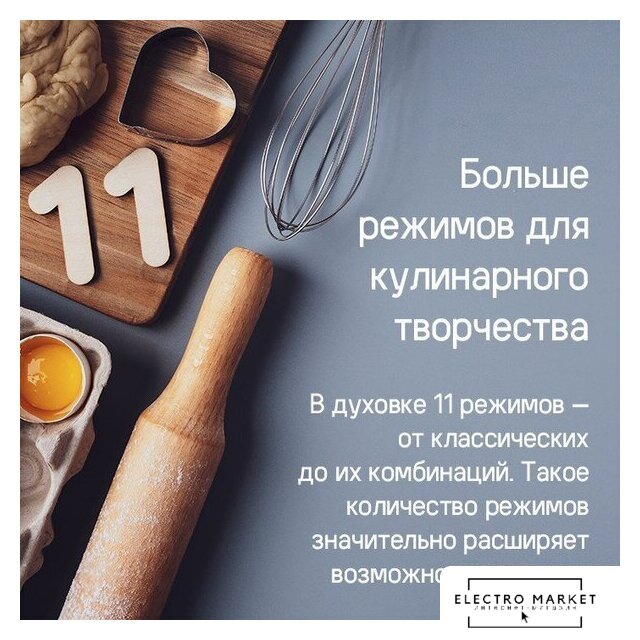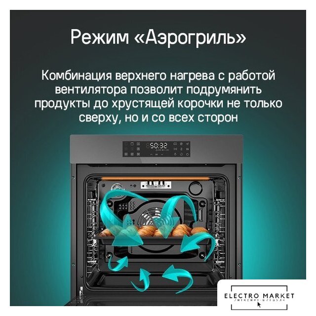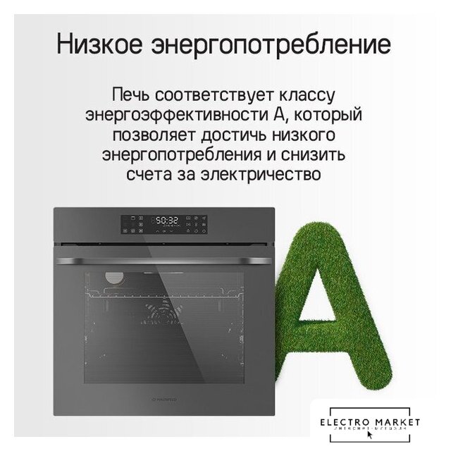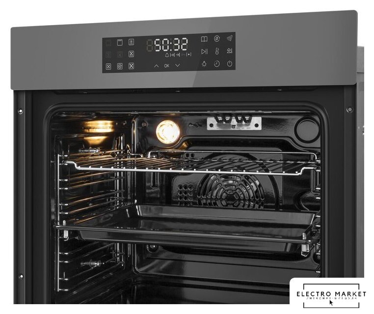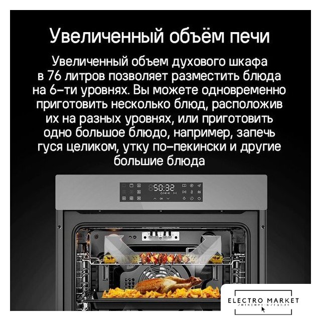 электрический с конвекцией, объем 71 л, утапливаемые переключатели, 6 режимов, очистка ручная + каталитическая, направляющие проволочные
