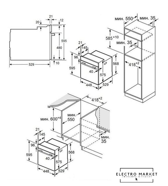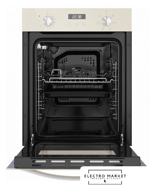 электрический с конвекцией, объем 67 л, утапливаемые переключатели, 6 режимов, очистка ручная, 3 стекла в дверце, направляющие проволочные