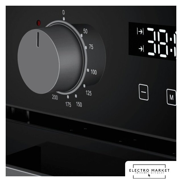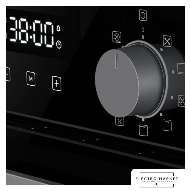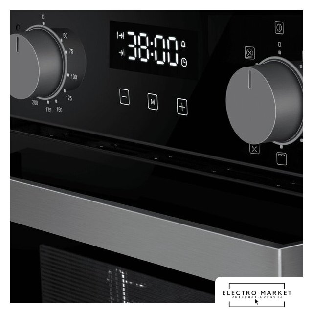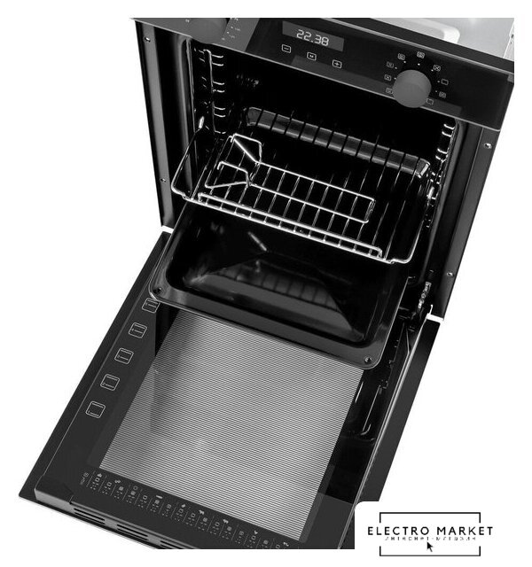 электрический с конвекцией, объем 60 л, утапливаемые переключатели, 6 режимов, очистка паровая, 3 стекла в дверце, направляющие проволочные