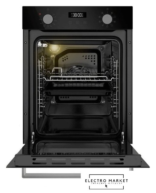 электрический с конвекцией, объем 51 л, 6 режимов, очистка ручная, 2 стекла в дверце, направляющие проволочные