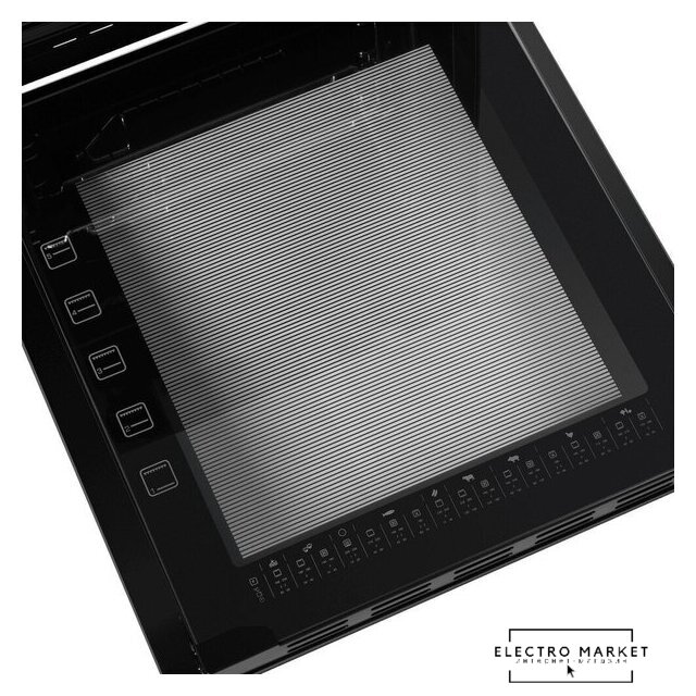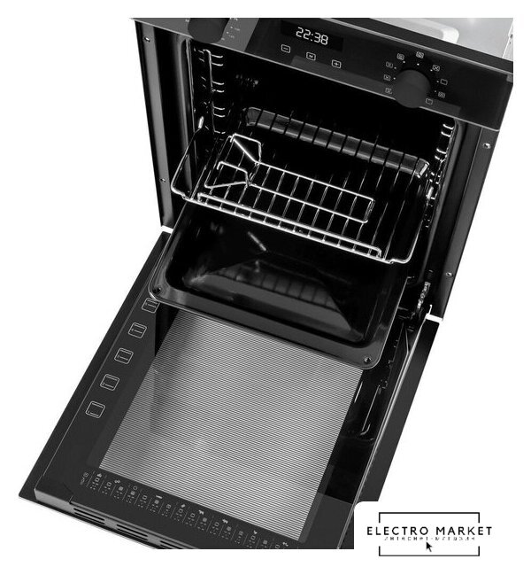 электрический с конвекцией, объем 60 л, утапливаемые переключатели, 6 режимов, очистка паровая, 3 стекла в дверце, направляющие проволочные
