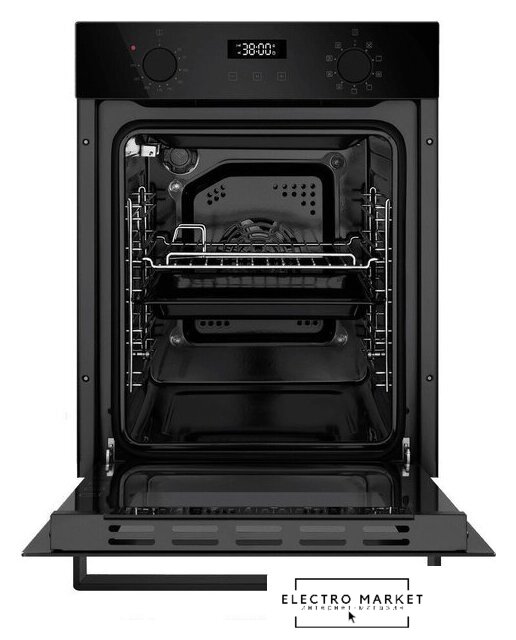 электрический с конвекцией, объем 51 л, 6 режимов, очистка ручная, 2 стекла в дверце, направляющие проволочные