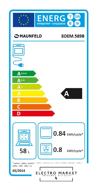 электрический с конвекцией, объем 60 л, утапливаемые переключатели, 6 режимов, очистка паровая, направляющие проволочные