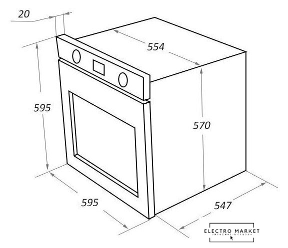 электрический с конвекцией, объем 58 л, 10 режимов, очистка ручная, 2 стекла в дверце, направляющие проволочные + телескопические (2 уровня)