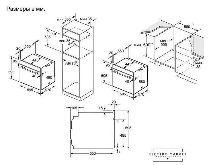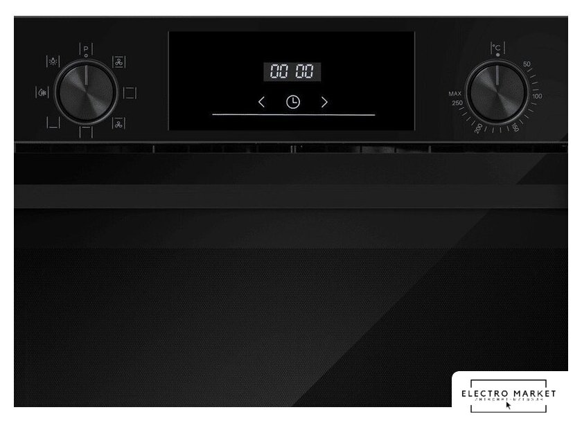 электрический с конвекцией, объем 78 л, утапливаемые переключатели, 6 режимов, очистка ручная, 3 стекла в дверце, направляющие проволочные (1 уровень)