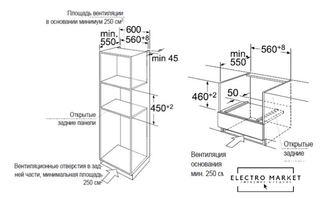 электрический с конвекцией, объем 50 л, 9 режимов, автопрограммы, очистка ручная, 3 стекла в дверце, направляющие проволочные