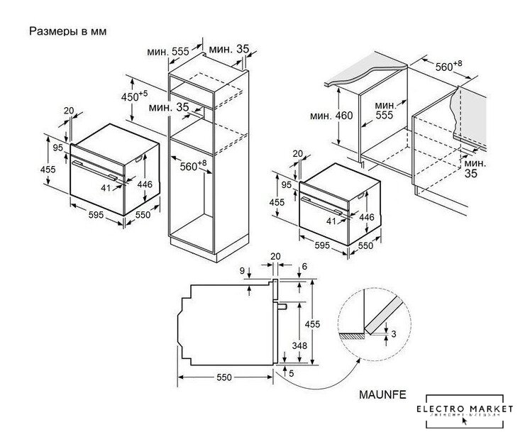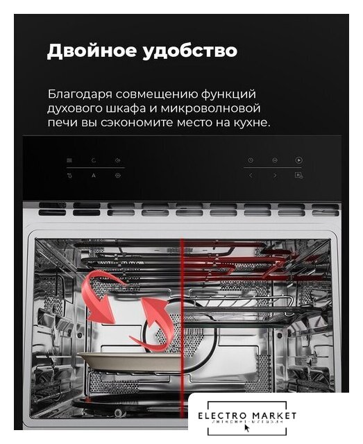 электрический с конвекцией, объем 71 л, утапливаемые переключатели, 6 режимов, очистка каталитическая, 2 стекла в дверце, направляющие проволочные (1 уровень)