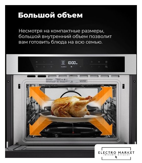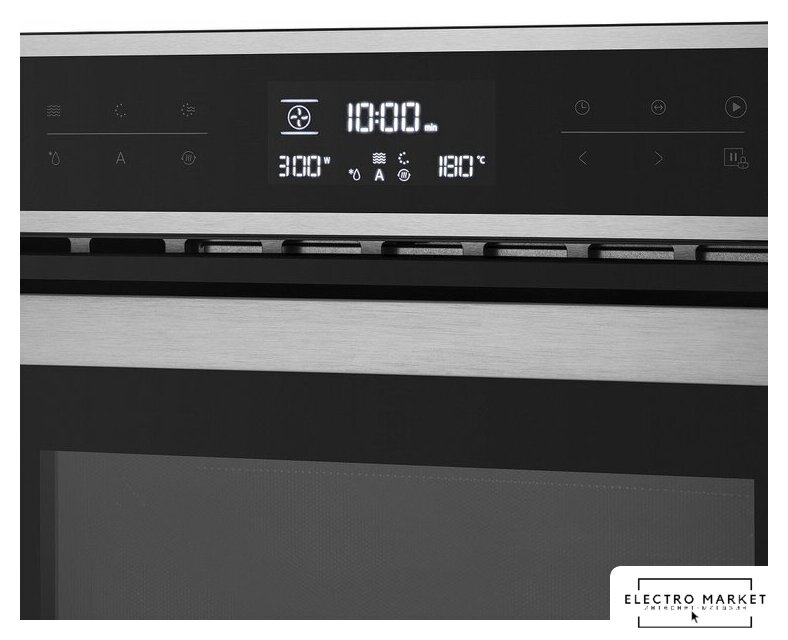 электрический с конвекцией, объем 72 л, 17 режимов, очистка каталитическая + паровая, направляющие проволочные + телескопические (1 уровень)