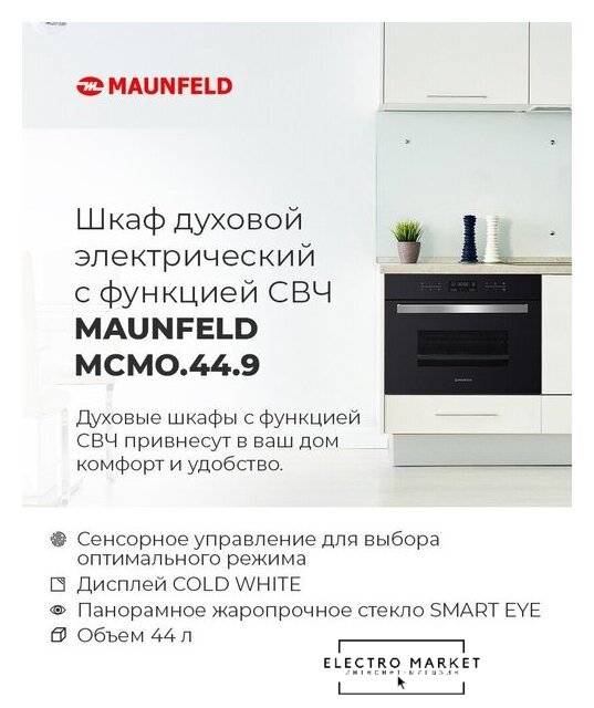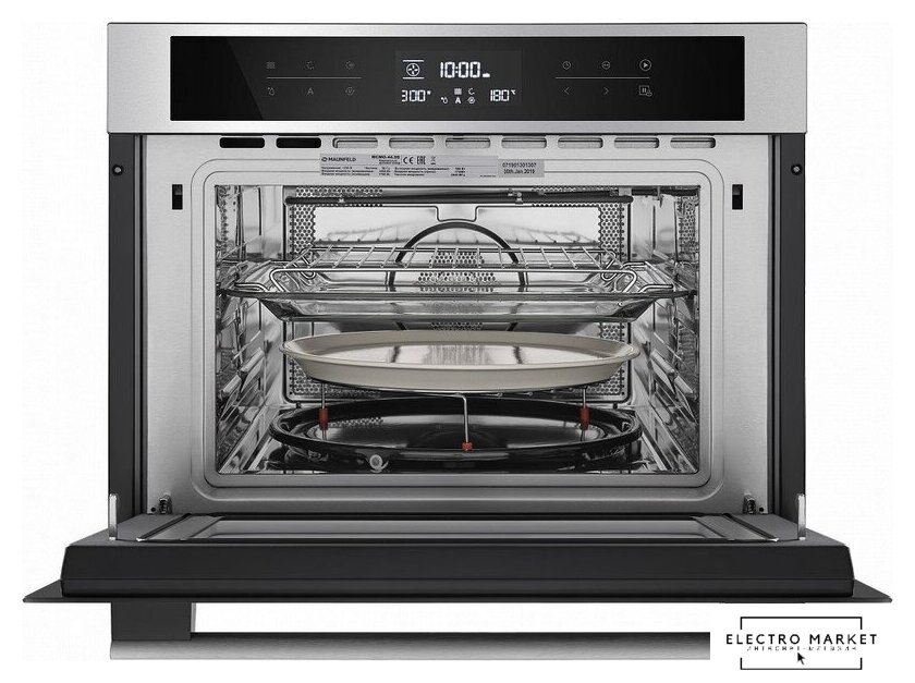 электрический с конвекцией, объем 76 л, 40 режимов, очистка каталитическая + паровая, 2 стекла в дверце, направляющие проволочные + телескопические (1 уровень)
