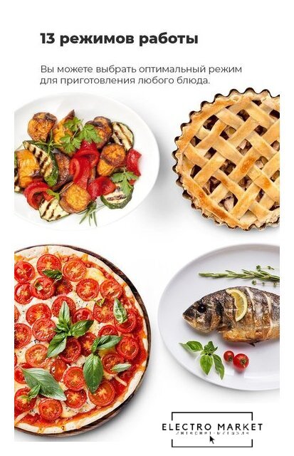 Режимы работы | вентиляционный нагрев, гриль + конвекция, нижний + вентиляционный нагрев, размораживание |