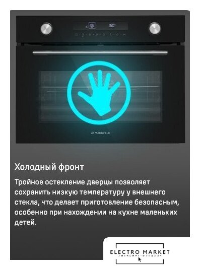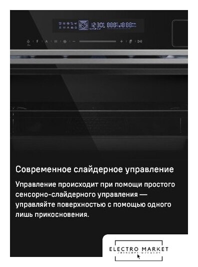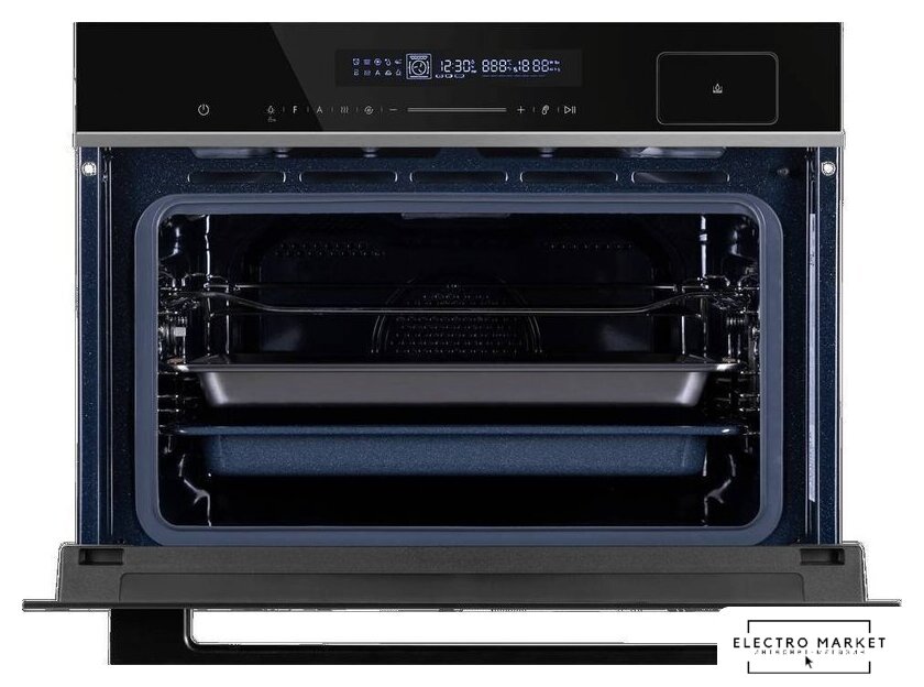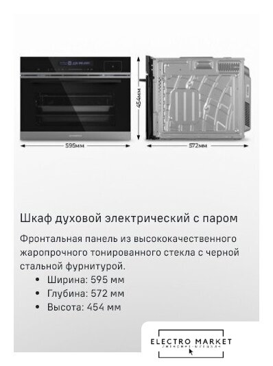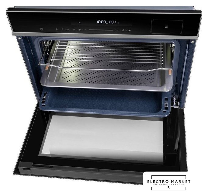 электрический с конвекцией, объем 73 л, автопрограммы, очистка паровая, направляющие проволочные + телескопические, термощуп