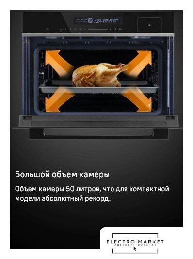 электрический с конвекцией, приготовление на пару, объем 73 л, 9 режимов, автопрограммы, очистка каталитическая, направляющие проволочные + телескопические (1 уровень)