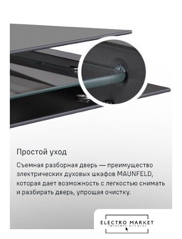 электрический с конвекцией, объем 45 л, 7 режимов, очистка ручная, 3 стекла в дверце, направляющие проволочные