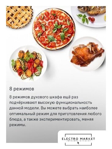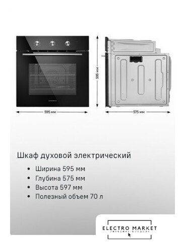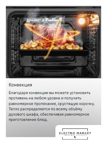 электрический с конвекцией, объем 65 л, 8 режимов, очистка ручная, энергопотребление A
