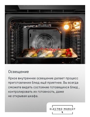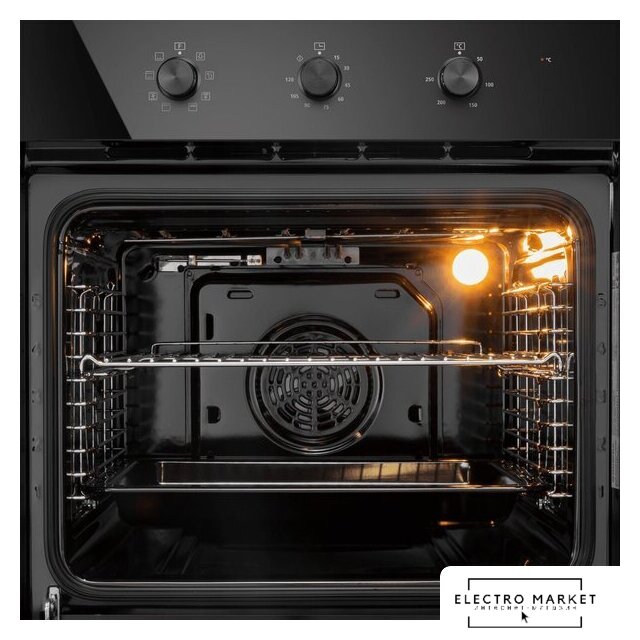 электрический с конвекцией, объем 60 л, 8 режимов, очистка ручная, проволочные направляющие, телескопические направляющие, энергопотребление A