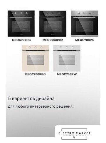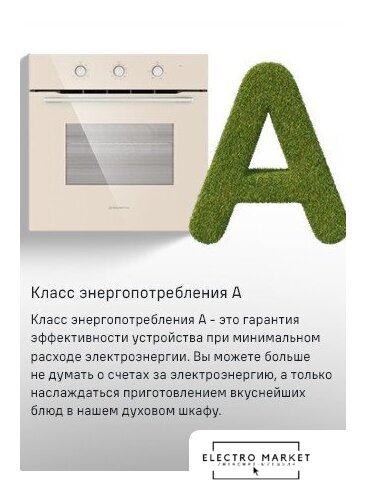 электрический с конвекцией, объем 65 л, 8 режимов, очистка каталитическая, проволочные направляющие, энергопотребление A