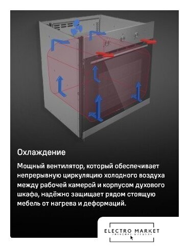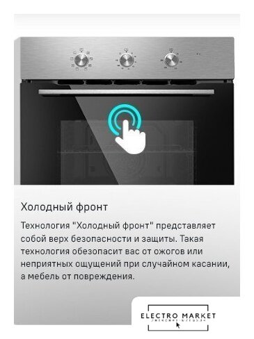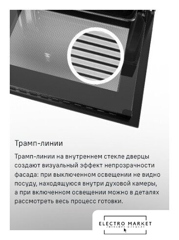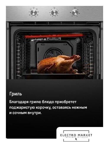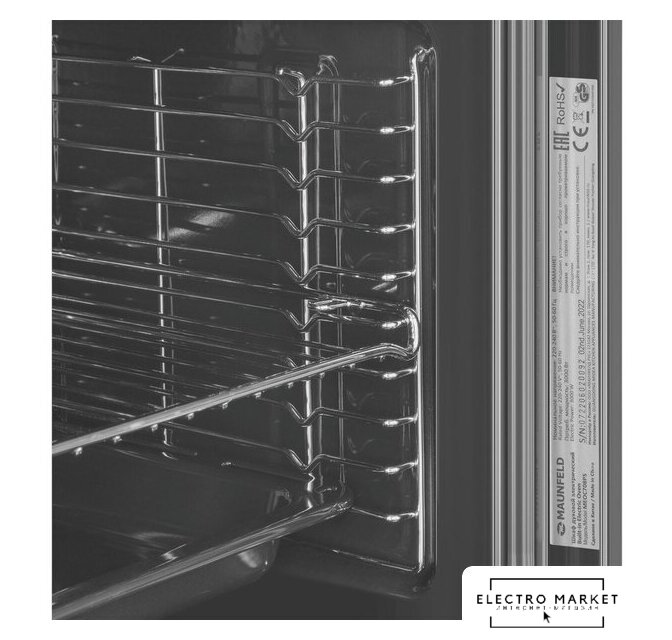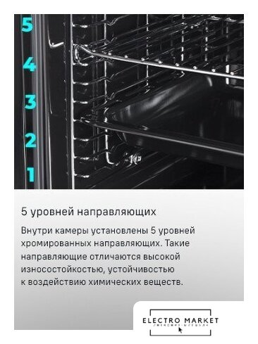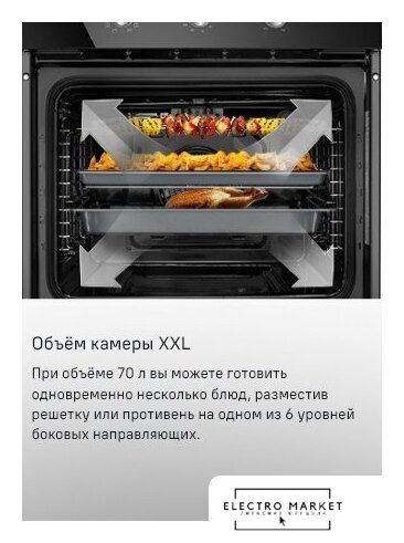 электрический с конвекцией, объем 60 л, 10 режимов, очистка паровая, 3 стекла в дверце, направляющие проволочные