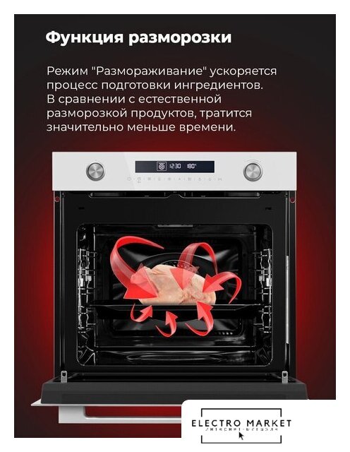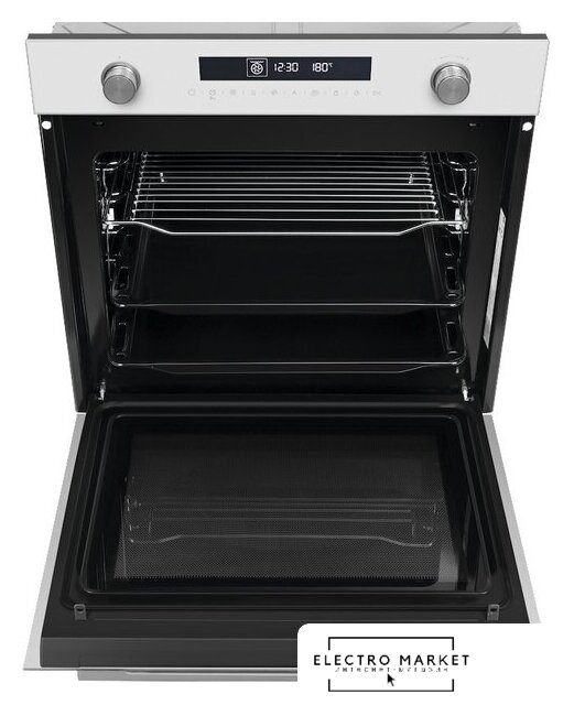 электрический с конвекцией, объем 60 л, 12 режимов, очистка паровая + каталитическая, 3 стекла в дверце, направляющие проволочные + телескопические (1 уровень)